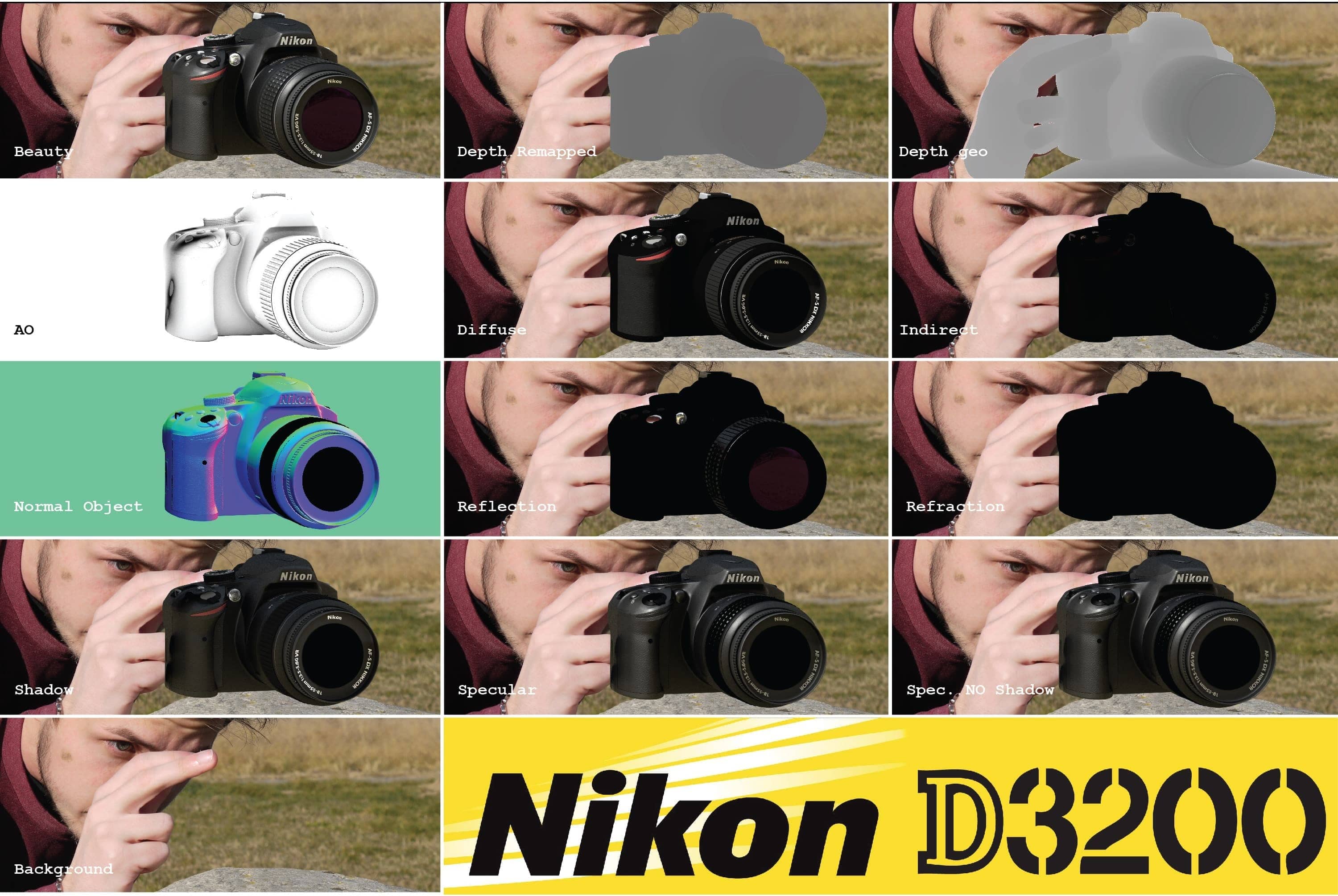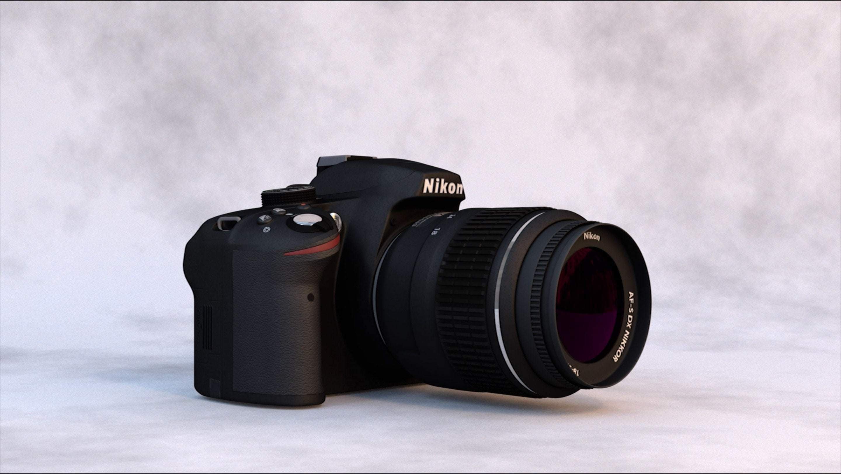 Integration of a reflex Nikon D3200 in two pictures. Modeling, shading and render were done in Maya and Photoshop was used fot texture and compositing.